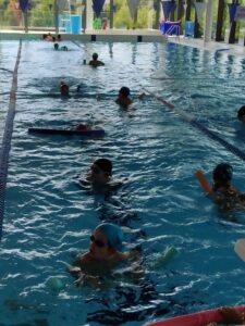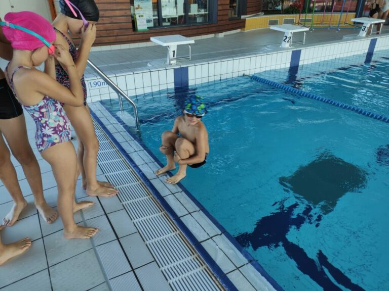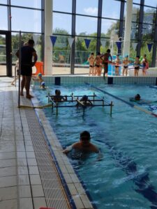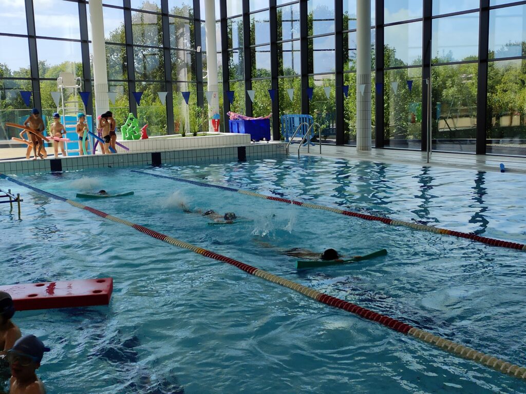 A la piscinePar CE2 / 22 octobre 2025 Depuis la rentrée, les CE2 et CM1 vont à la piscine de la Mothe-Achard.L’objectif des 8 séances est de leur apprendre à être à l’aise dans l’eau dans toutes les circonstances, y compris celle d’une chute imprévue.Il y a différents ateliers : passer sous des obstacles, aller chercher des objets, ramener un mannequin à la surface, faire une longueur sur le ventre, sur le dos, sauter du bord ou du plot et pour certains plonger.Il reste deux séances pendant lesquelles les enfants passeront l’attestation « savoir nager » en sécurité.Merci aux adultes qui nous accompagnent car sans eux, il ne pourrait pas y avoir de séances de natation.