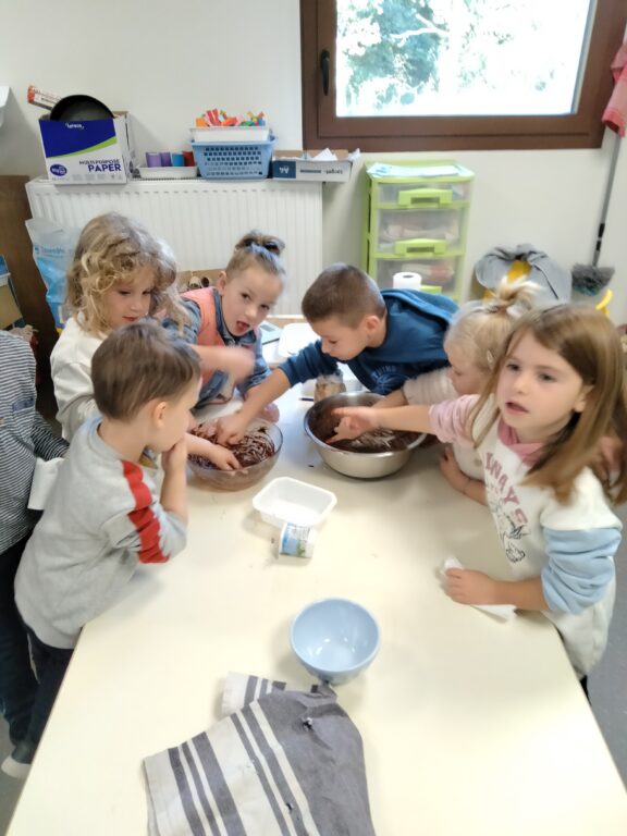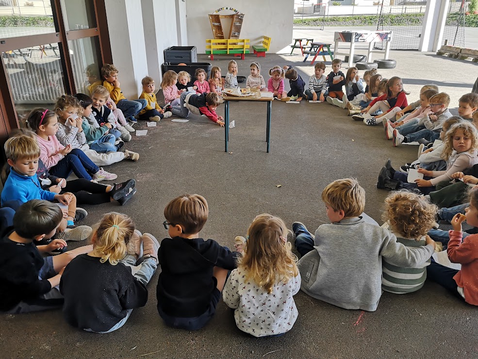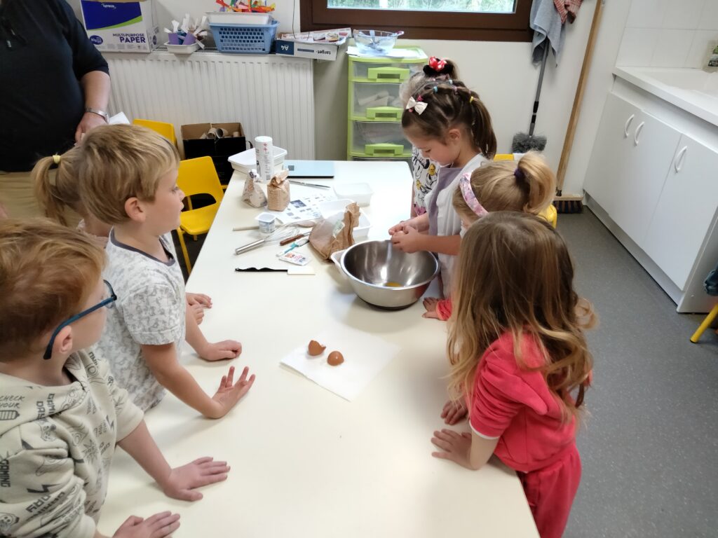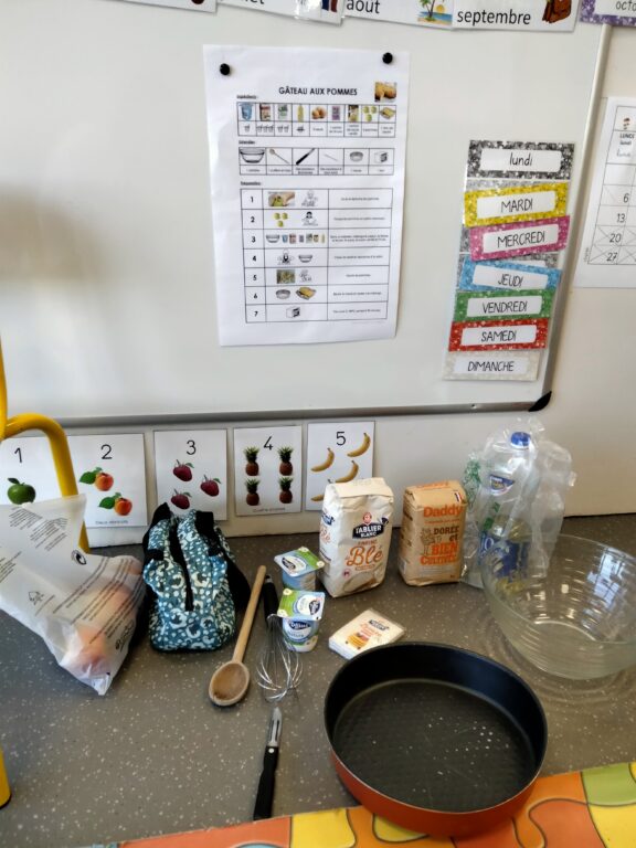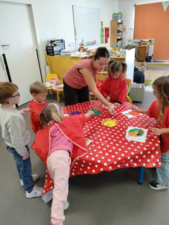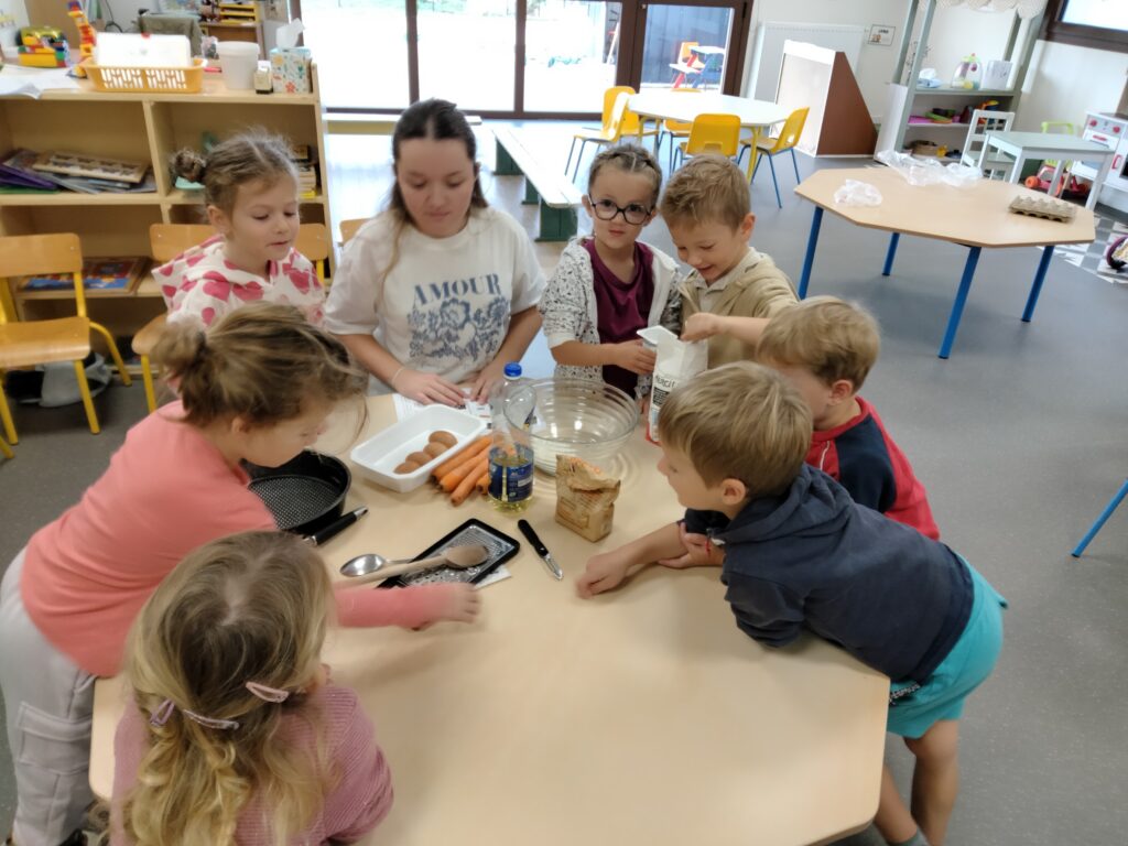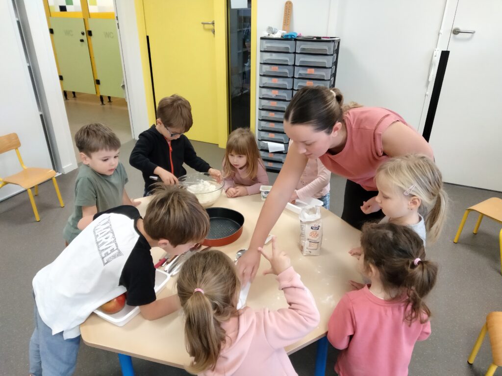 Du 6 au 9 octobre, nous avons participé à de nombreux ateliers autour du goût : jeu de loto autour des fruits et des légumes, langage oral pour découvrir la recette du jour avec ses ingrédients et ses ustensiles, cuisine, danses, découverte de différentes pommes et des légumes grâce à nos 5 sens, peinture de fruits et légumes, décoration de toques, découverte d’artistes (Arcimboldo et Paul Cézanne).