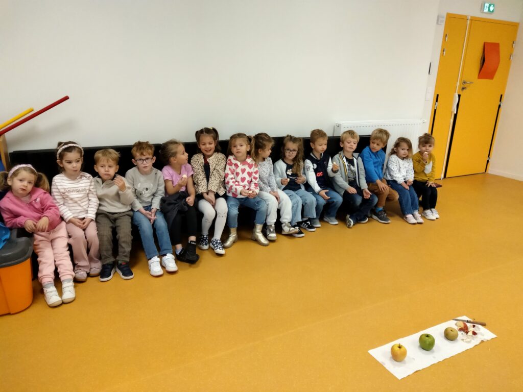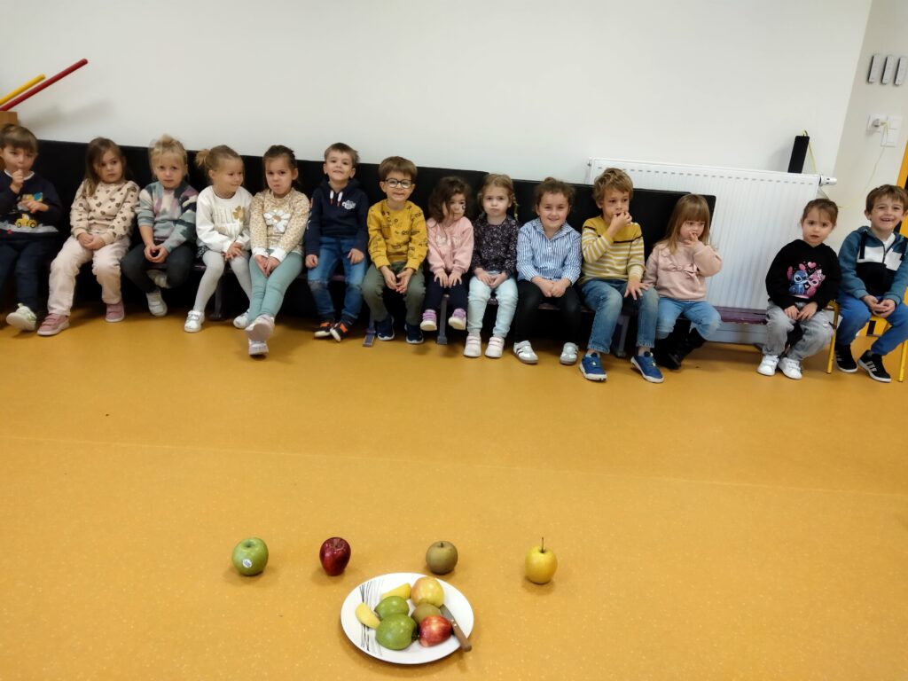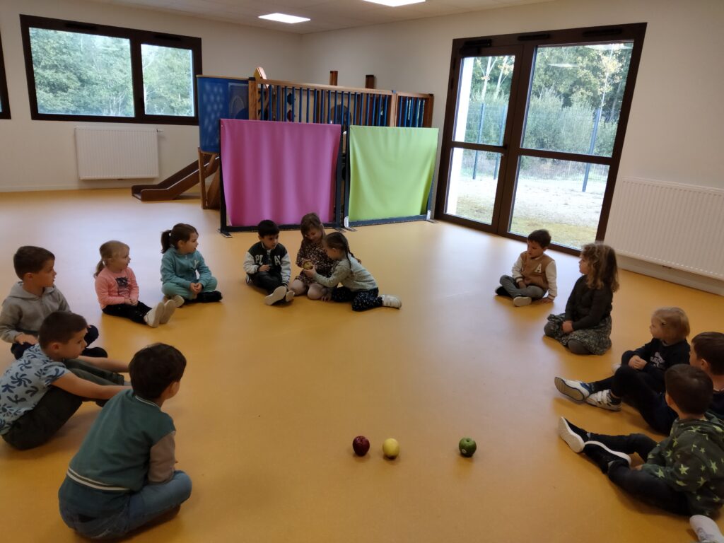 Découverte de différentes espèces de pommes à la vue, au toucher, à l’odeur, au goût. Voici la granny, la gala, la canada et la golden.