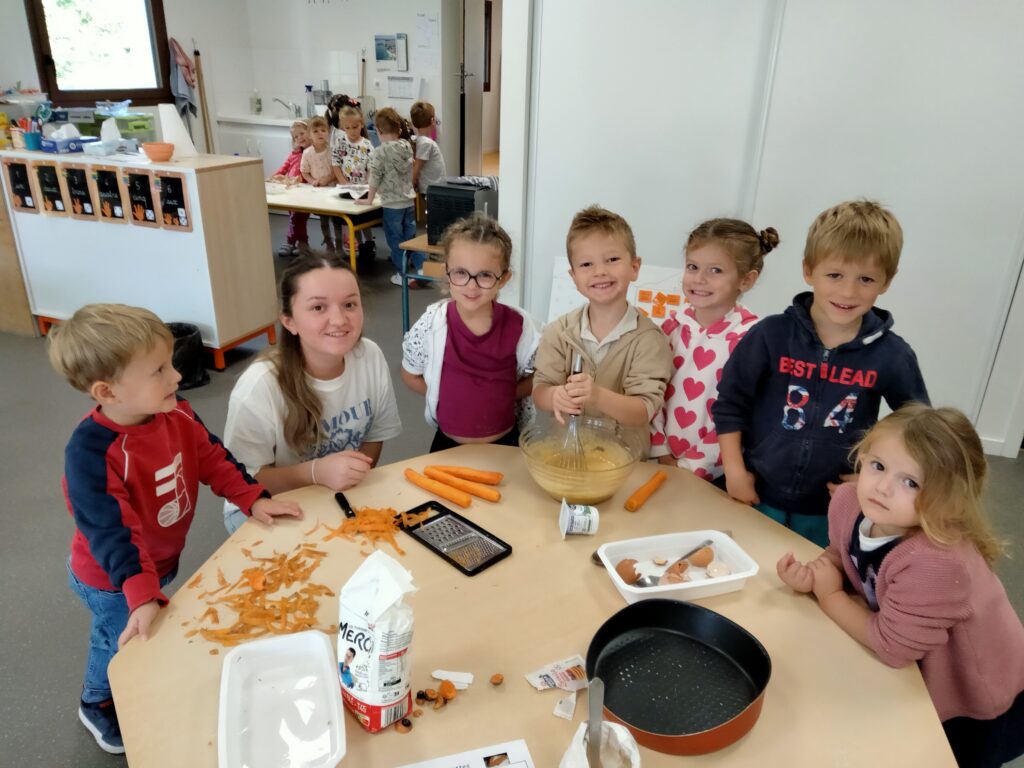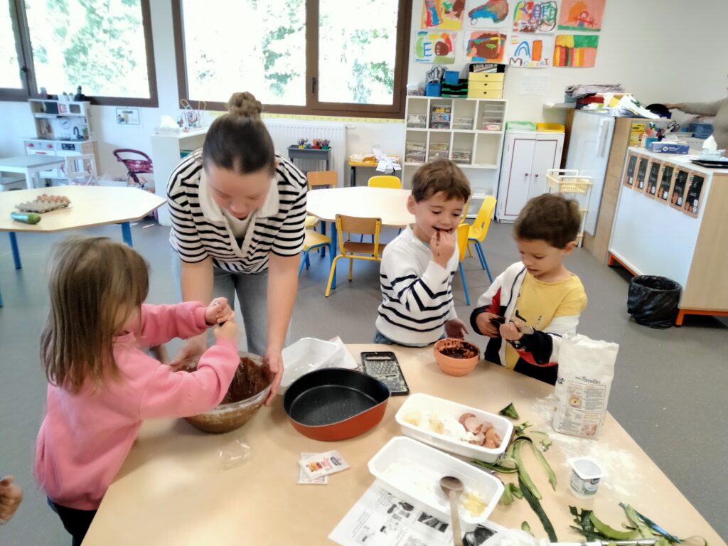 Chaque jour, nous dégustions le gâteau cuisiné le matin: lundi, gâteau aux pommes, mardi, gâteau courgettes/chocolat, jeudi gâteau à la carotte.